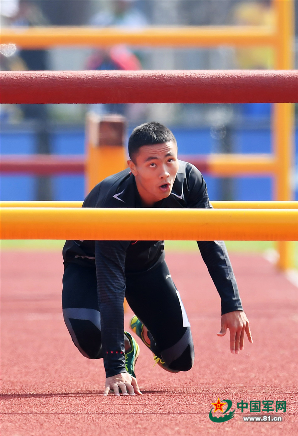 李睿在空军五项障碍跑比赛中。王传顺摄