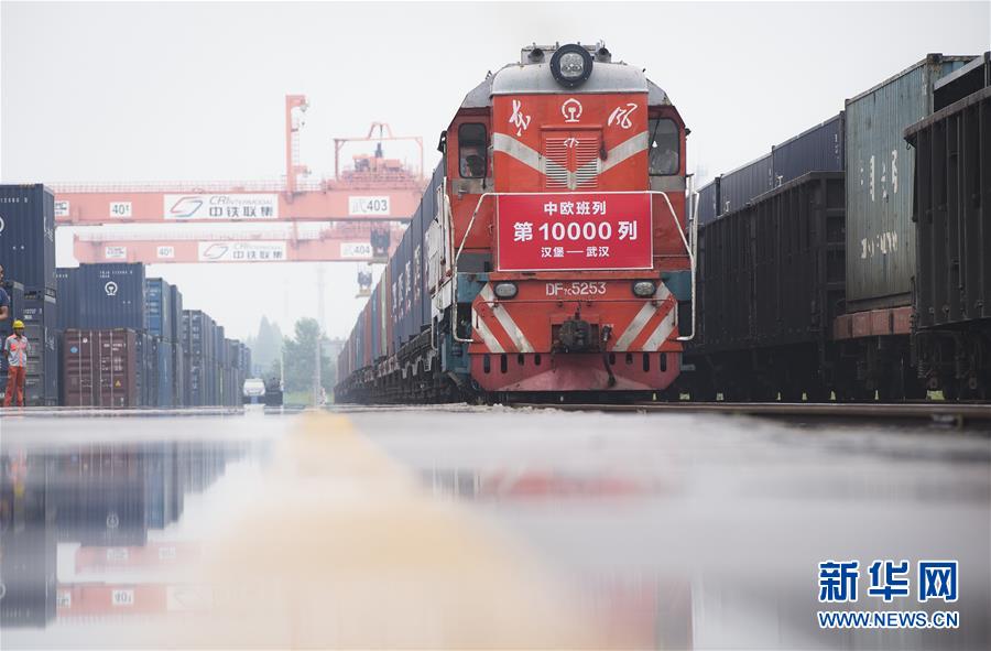 一辆中欧班列(汉堡—武汉)到达武汉吴家山铁路集装箱中心站(2018年8月26日摄)。新华社记者肖艺九摄
