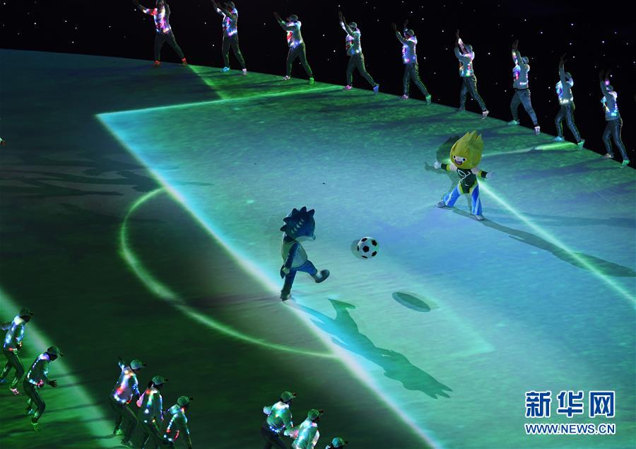 10月27日,第七届世界军人运动会闭幕式在武汉举行。这是闭幕式上的文艺表演(10月27日摄)。新华社记者 王建威 摄