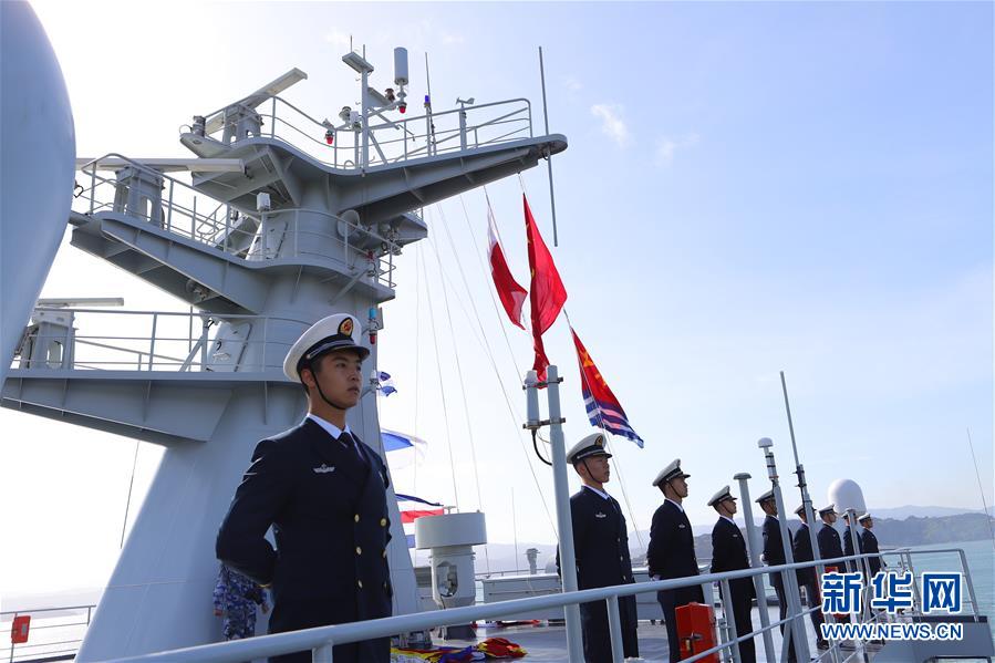 10月26日,在新西兰首都惠灵顿,中国海军训练舰戚继光舰抵达港口。新华社发(张浩宇 摄)