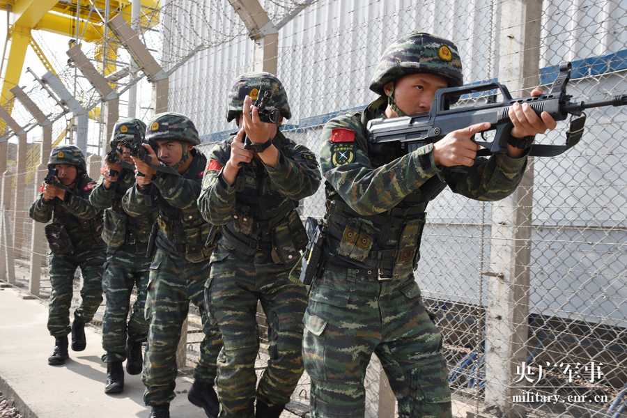 特战队员根据任务分工,利用周边地物隐蔽接近“暴恐分子”。
