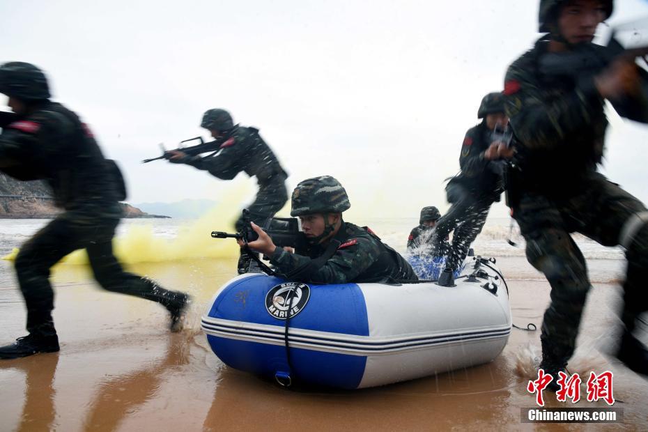 连日来,武警福建总队“魔鬼周”第一片区组织福州、莆田、漳州、龙岩和宁德支队的特战队员,在陌生海域开展抢滩登陆、滩涂追击、武装奔袭、极限体能等课目训练。图为特战队员追击“暴恐份子”。图/文 郭大伟、李东昇、饶路通、吕少、易樟林、吕明