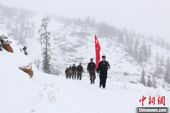 7日,新疆阿勒泰边境管理支队阿勒泰市边境管理大队民警正在对边境一线开展巡边踏查工作。 王友波 摄