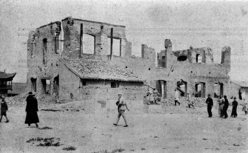 1939年,日军轰炸西安,这是易俗社剧院被炸之后屋宇残壳。新华社稿