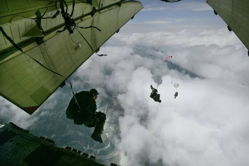 2008年5月14日,15名空降兵从地震灾区四川茂县上空4999米的高空奋不顾身地跳下。新华社发