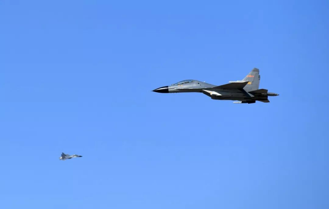 10月17日,空军歼-11BS战机进行双机空中展示。新华社记者 林宏 摄