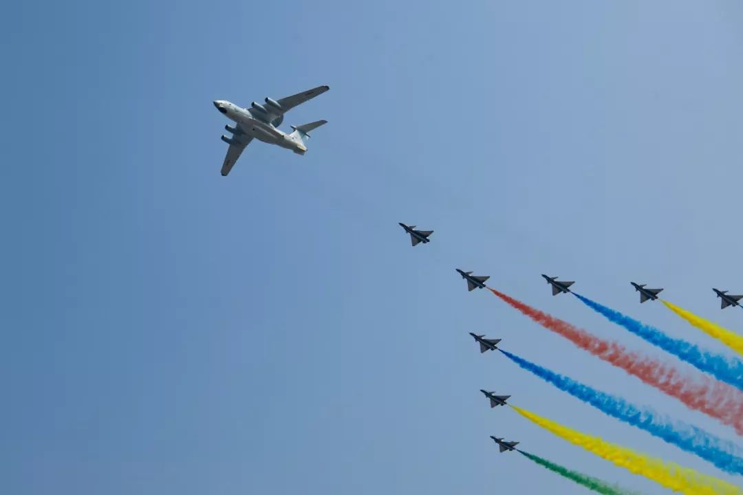 10月1日上午,庆祝中华人民共和国成立70周年大会在北京天安门广场隆重举行。这是加受油机梯队。新华社记者 李刚 摄