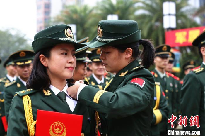 武警广西总队柳州支队44人晋升 家属帮换新警衔