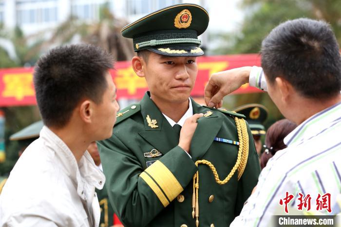 武警广西总队柳州支队44人晋升 家属帮换新警衔