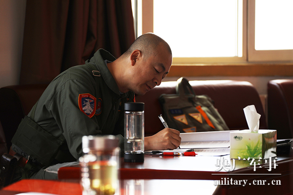 晨光中,海军航空大学某试训基地舰载机飞行教官孙宝嵩正伏案,在笔记本上记录着什么。