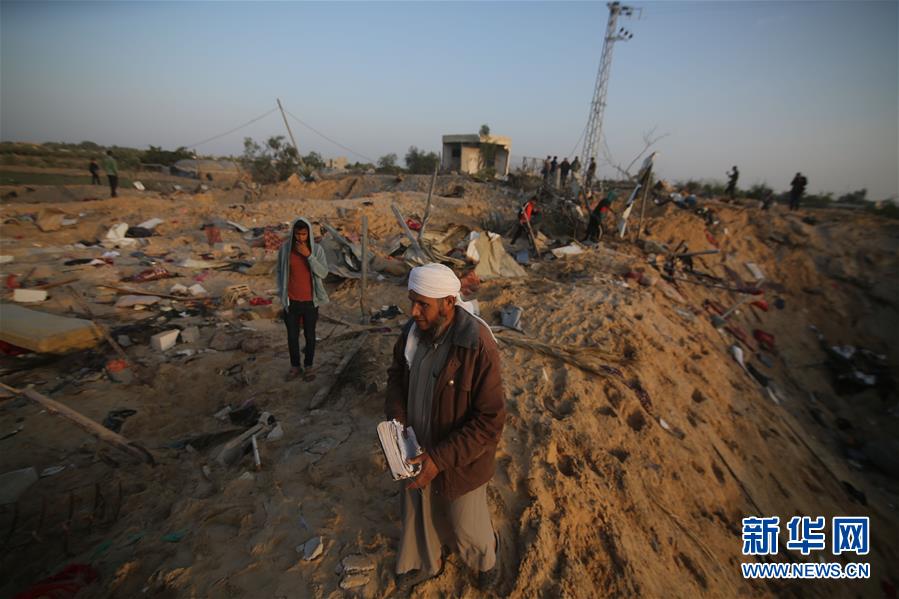 11月14日,在加沙地带代尔拜拉赫,巴勒斯坦民众查看遭空袭后的房屋。 据以色列媒体报道,以色列军方和包括巴勒斯坦伊斯兰圣战组织(杰哈德)在内的各武装组织13日深夜达成停火协议。 新华社发(哈立德·奥马尔摄)