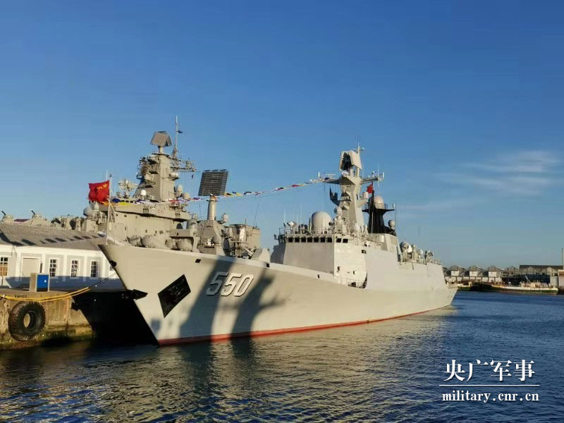 中国海军潍坊舰抵达南非开普敦港 参加中俄南非三国海上联演