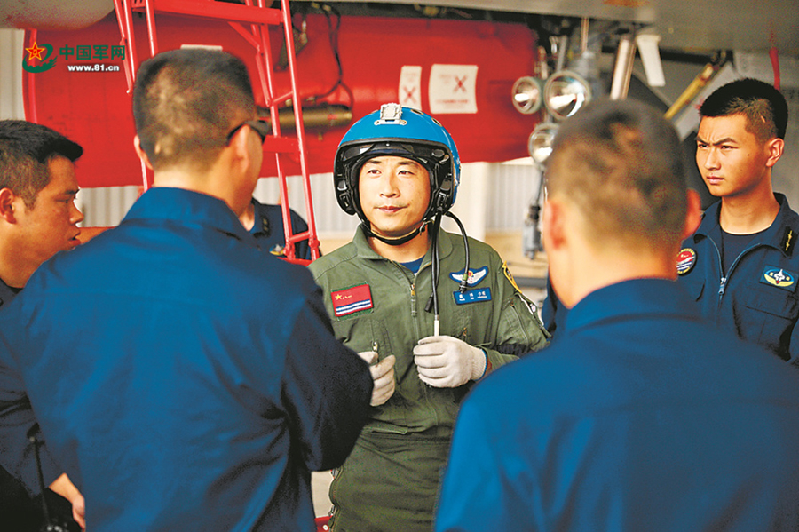 训练结束后,飞行员走下战机与机务人员交流。(王庆厚 张付华 侯 爵 解放军报记者 陈国全摄影报道)