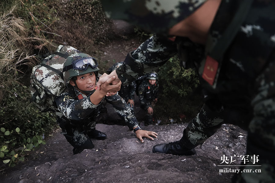 特战队员开展山地体能极限训练,两名战友相互帮扶
