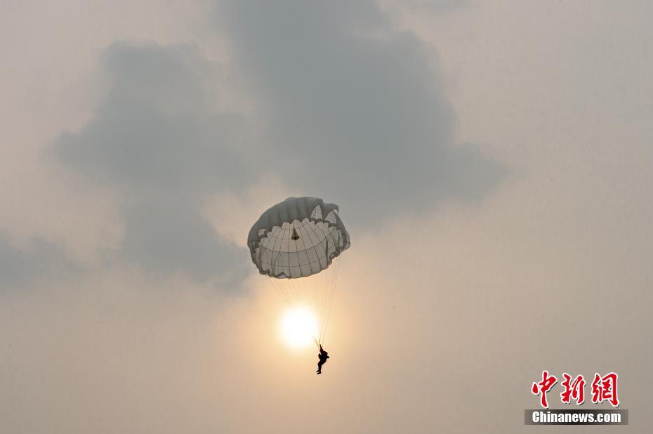 图为12月5日,特战队员开展冬季伞降训练。中新社发 王述东 摄