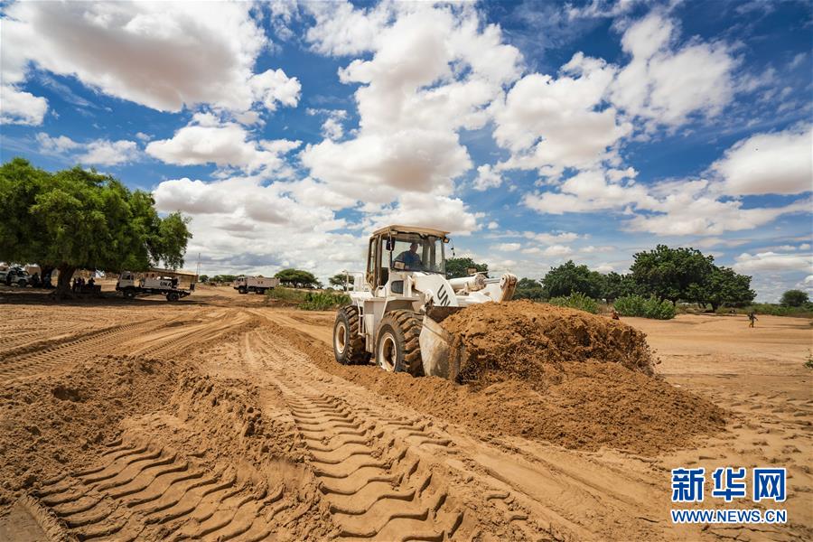 10月6日,在苏丹法希尔,中国第15批赴苏丹达尔富尔维和工兵分队修复营地道路。新华社发