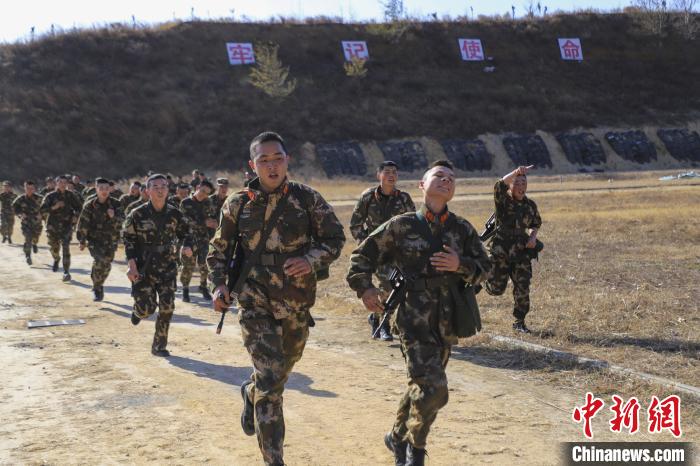 图为武装五公里越野考核。 蔡霖伟 摄