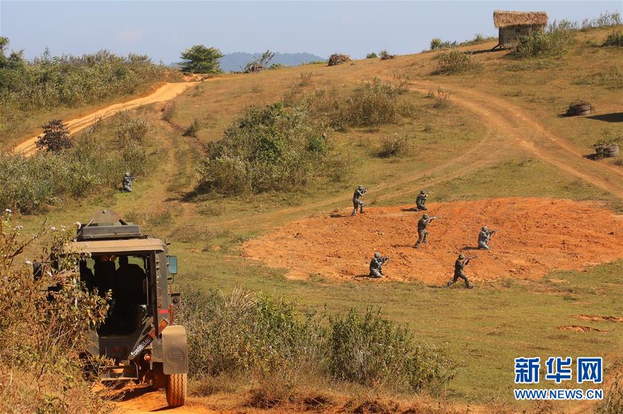 12月19日,在印度梅加拉亚邦西隆市乌姆罗伊,中印官兵在综合演练中进行搜索封控。 “携手—2019”中印陆军反恐联合训练20日在印度梅加拉亚邦西隆市乌姆罗伊军营举行结训仪式,双方观摩团团长共同检阅联训分队,并为优秀队员颁发奖章。“携手—2019”中印陆军反恐联合训练本月7日至20日在乌姆罗伊举行。中印双方各派出130名官兵组成联训分队,按照适应性训练、混编同训和综合演练三个阶段完成实兵演练。 新华社发(王昊摄)