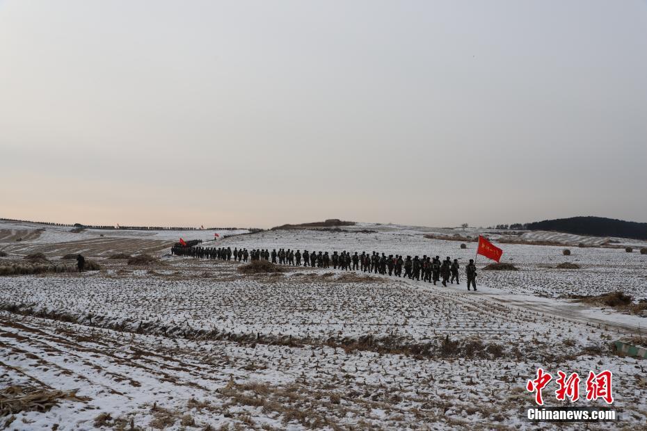 12月22日,武警辽宁总队沈阳支队组织新兵开展野营拉练,在恶劣环境下锤炼部队作风,提升新兵综合素质能力。 中新社发 邹新江 摄