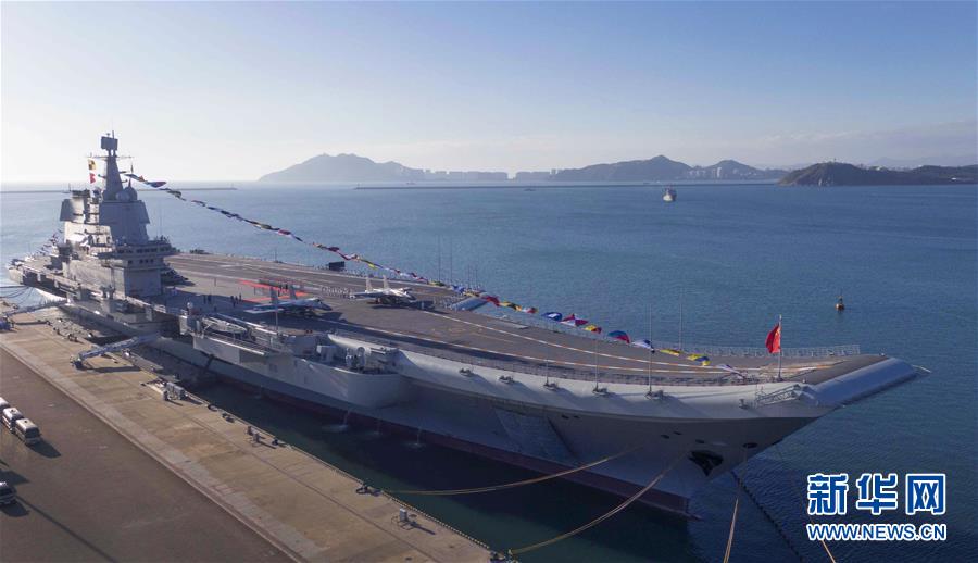 12月17日,我国第一艘国产航空母舰山东舰在海南三亚某军港交付海军。经中央军委批准,我国第一艘国产航母命名为“中国人民解放军海军山东舰”,舷号为“17”。这是停靠在海南三亚某军港的山东舰(12月15日无人机拍摄)。 新华社记者 李刚 摄