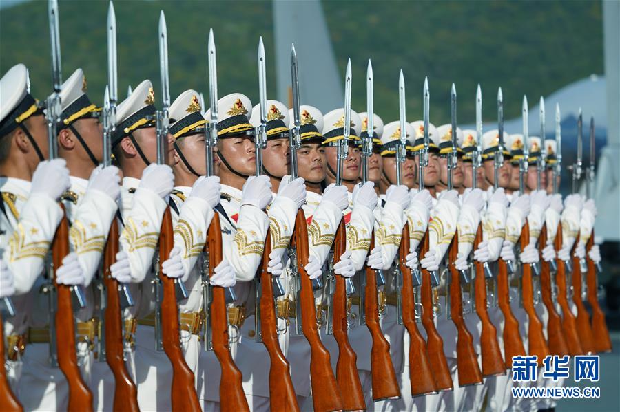 12月17日,我国第一艘国产航空母舰山东舰在海南三亚某军港交付海军。经中央军委批准,我国第一艘国产航母命名为“中国人民解放军海军山东舰”,舷号为“17”。这是交接入列仪式现场。 新华社记者 李刚 摄