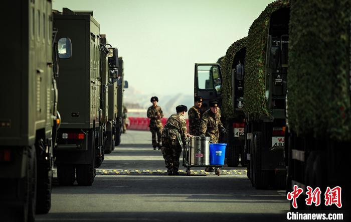 甘肃武警冬季野营拉练:“战地快餐”野外飘香
