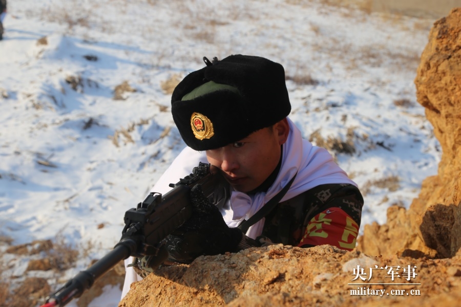 战士在雪地进行警戒