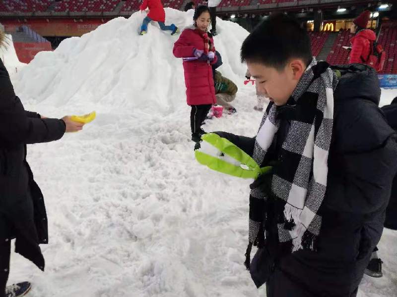 参加活动的小朋友制作雪球。张金娟 摄