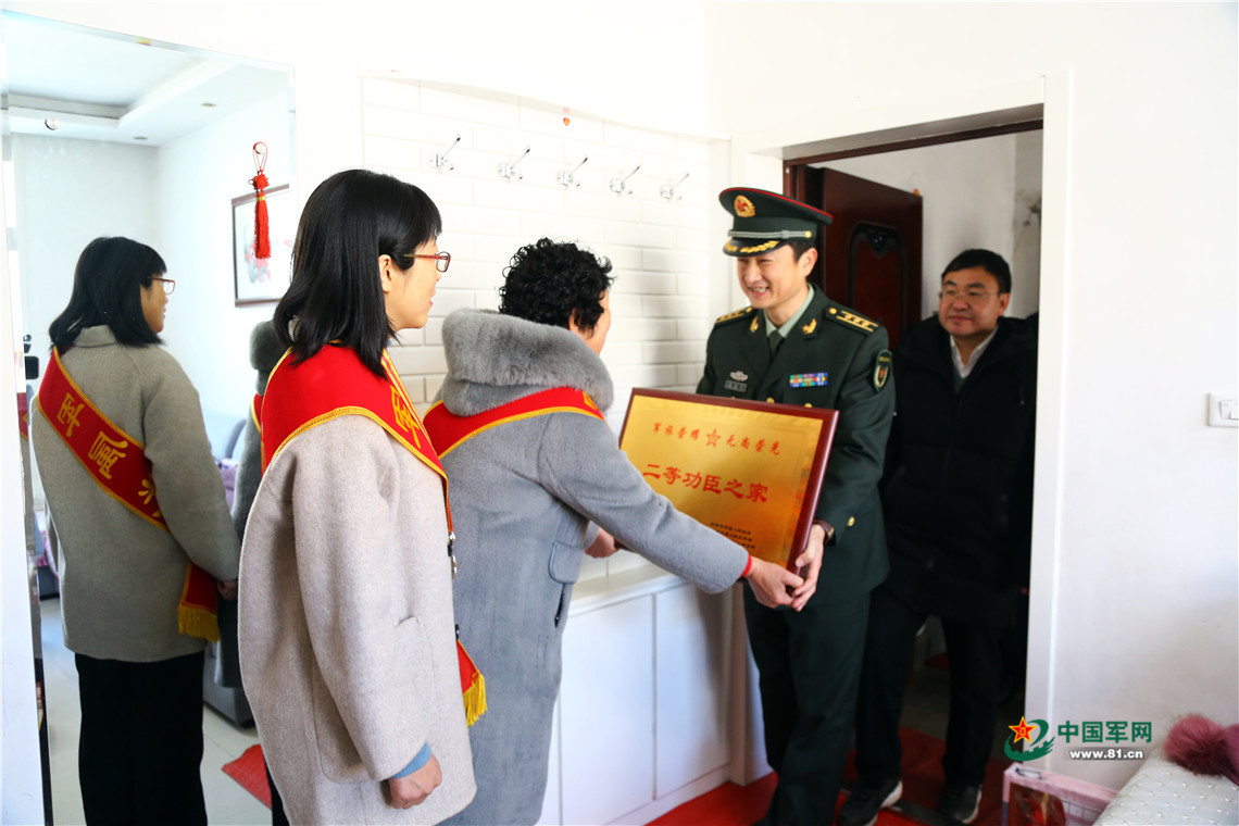 当地人武部、退役军人事务局工作人员登门送上功臣之家牌匾。