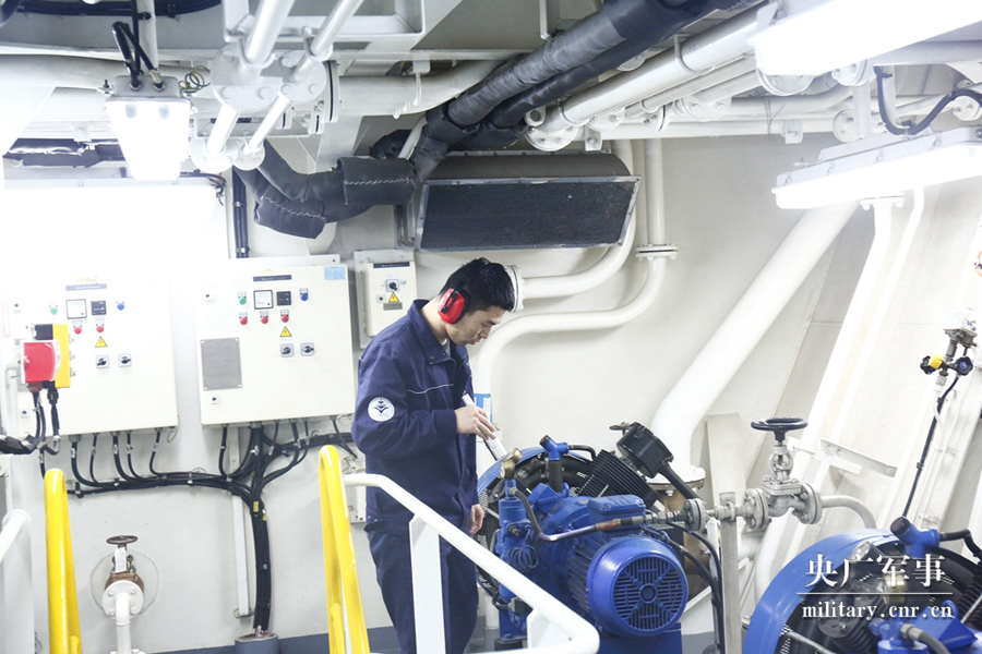 轮机部门船员进行巡视