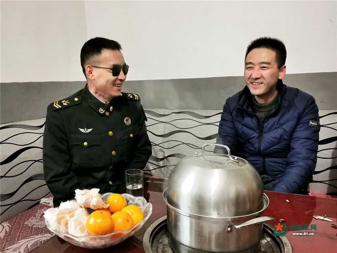 杜富国开心地与一起长大的堂哥杜富忠唠家常。