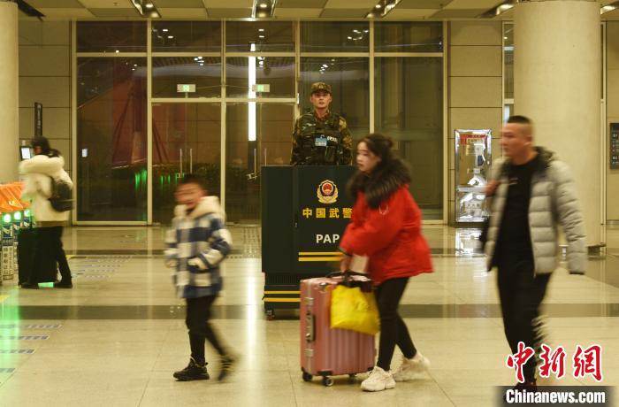 1月21日,武警合肥支队春运执勤官兵在合肥火车站执勤。 徐伟 摄