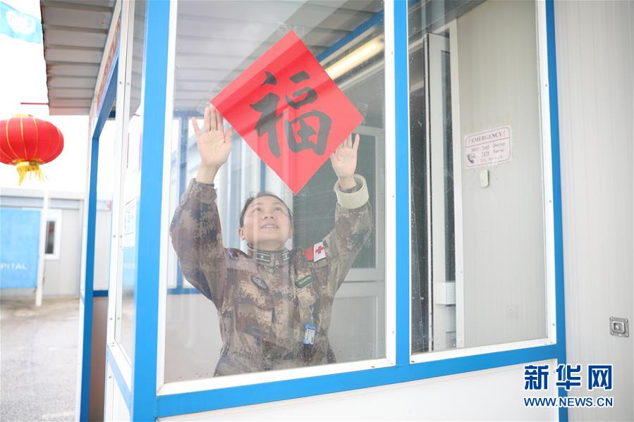 1月24日,在位于黎巴嫩东南边境的中国第18批赴黎维和医疗分队营地,官兵们在贴福字迎新春。 1月25日是中国农历鼠年的新年。 新华社发(黄世峰摄)