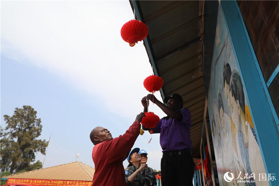 维和官兵们和儿童村的工作人员一起布置营区(吕强 摄)