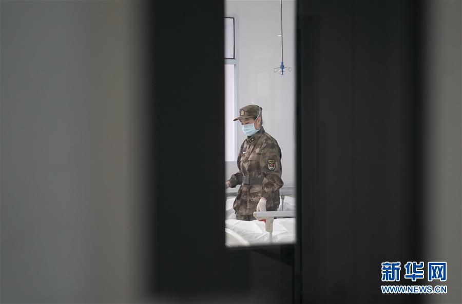 1月26日,在武汉市金银潭医院,陆军军医大学医疗队在接管病区清理病房,准备迎接患者入院。 当日,解放军援汉医疗队在武汉全面展开救治工作。陆军军医大学医疗队成建制接管武汉市金银潭医院两个病区。 经中央军委批准,解放军从陆军、海军、空军军医大学抽组3支医疗队。其中,陆军军医大学医疗队在金银潭医院接管两个病区;海军军医大学医疗队在汉口医院全面接管重症监护室,新开设了呼吸科病区;空军军医大学医疗队进驻武昌医院,按照重症救治、收治病房、发热门诊、检验和放射检查等环节进行了人员配置。 他们所进驻的3所医院,是武汉地区指定接诊新型冠状病毒感染的肺炎病例较多的地方医院,医护人员承受巨大压力。 新华社记者 程敏 摄