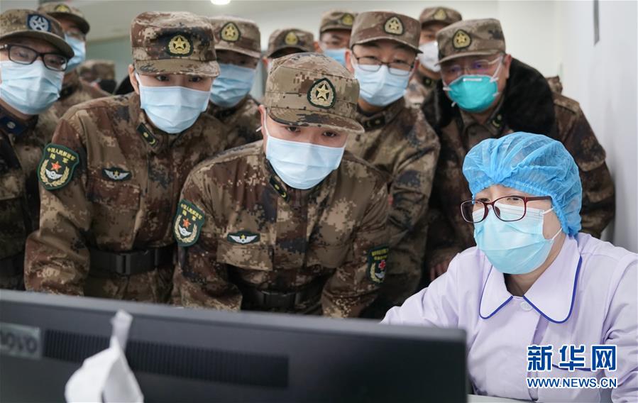 1月26日,陆军军医大学医疗队成员与武汉市金银潭医院医护人员进行工作交接。 当日,解放军援汉医疗队在武汉全面展开救治工作。陆军军医大学医疗队成建制接管武汉市金银潭医院两个病区。 经中央军委批准,解放军从陆军、海军、空军军医大学抽组3支医疗队。其中,陆军军医大学医疗队在金银潭医院接管两个病区;海军军医大学医疗队在汉口医院全面接管重症监护室,新开设了呼吸科病区;空军军医大学医疗队进驻武昌医院,按照重症救治、收治病房、发热门诊、检验和放射检查等环节进行了人员配置。 他们所进驻的3所医院,是武汉地区指定接诊新型冠状病毒感染的肺炎病例较多的地方医院,医护人员承受巨大压力。 新华社记者 程敏 摄