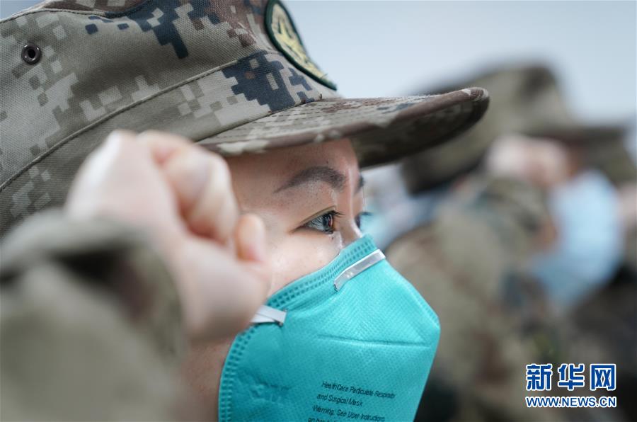 2月1日,在武汉金银潭医院,陆军军医大学医疗队队员在党旗前宣誓。新华社记者 程敏 摄