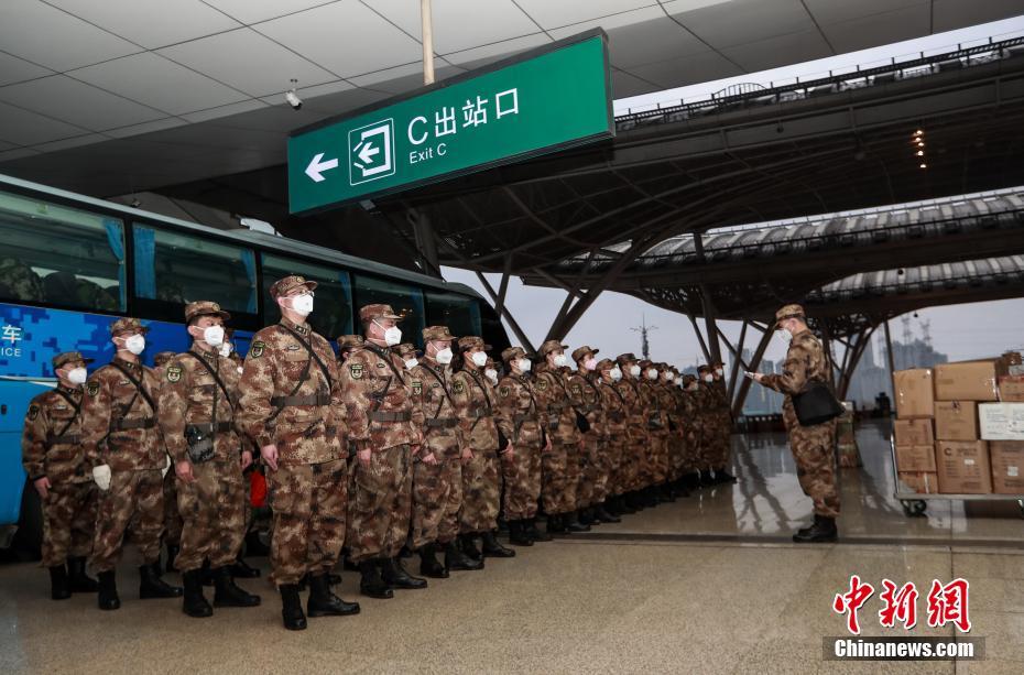 2月1日,150人的某部医院医疗队由石家庄搭乘G4633次列车抵达武汉火车站。中新社发 赵军 摄