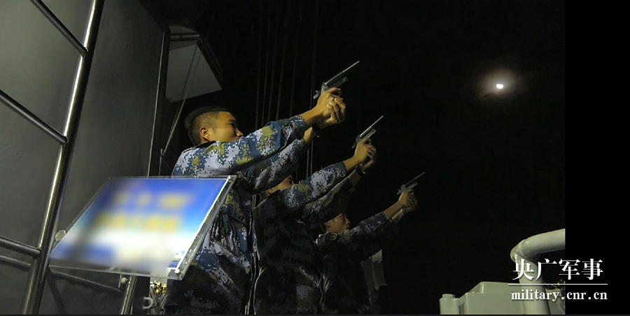 三发信号弹升空,官兵用简单的仪式,纪念舰艇从东半球到西半球的跨越。