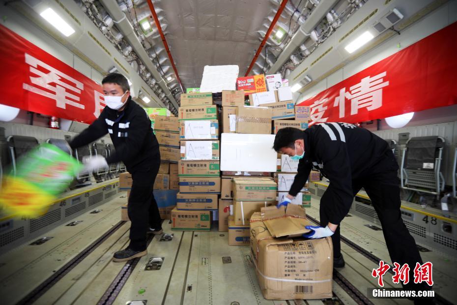 2月13日,11架空军运输机载947名医护人员和74吨医疗物资抵达武汉天河机场。这是中国国产运-20大型运输机首次参加非战争军事行动,也是空军首次成体系大规模出动现役大中型运输机执行紧急大空运任务。此次空军出动运-20、伊尔-76、运-9共3型11架运输机,分别从乌鲁木齐、沈阳、西宁、天津、张家口、成都、重庆等7地机场起飞,向武汉空运军队支援湖北医疗队队员和物资,助力武汉打赢保卫战。中新社发 陈晓东 摄