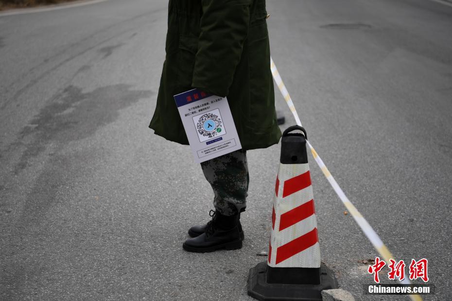 一名女民兵在社区出入点执勤。中新社记者 康平 摄