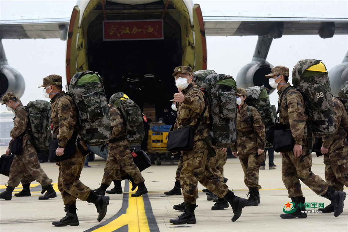 2月2日,空军出动8架大型运输机空运军队支援湖北医疗队抵达武汉天河机场。解放军报记者 范显海 摄