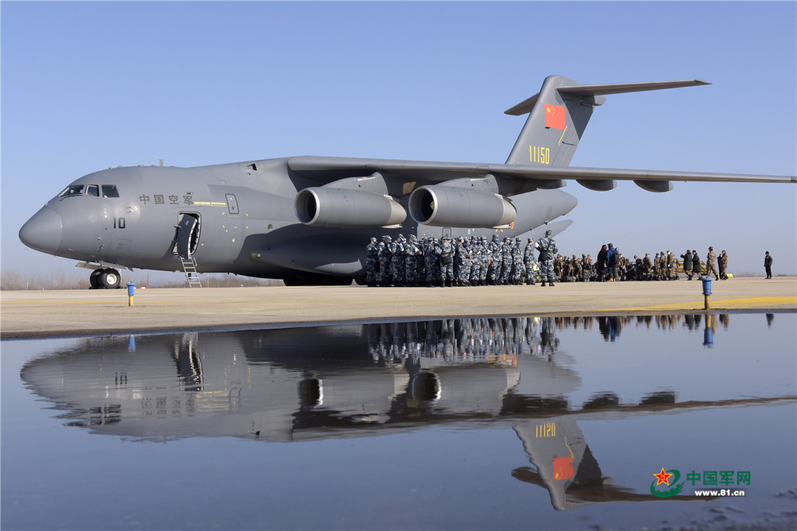 空地联运,军队又一批1200名医护人员抵达武汉。解放军报记者 范显海 摄