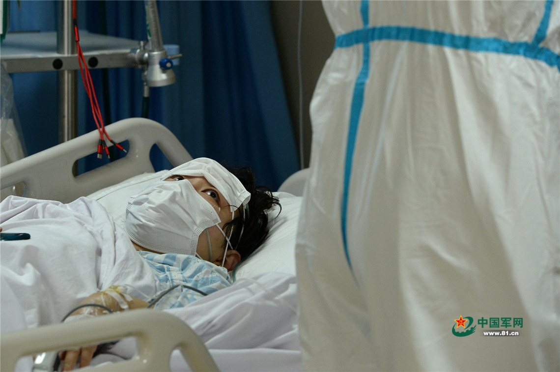 1月27日上午,海军军医大学医疗队医护人员在汉口医院重症监护室对新型冠状病毒感染的肺炎患者进行救治。在患者眼中,医护人员就是他们的“救星”。解放军报记者 范显海 摄