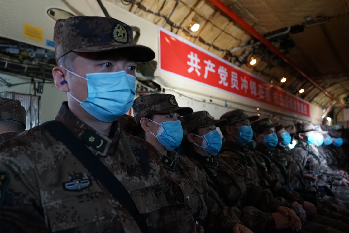 2月2日,空军伊尔-76运输机将军队医疗队连夜空运到武汉。新华社发(李世宁 摄)