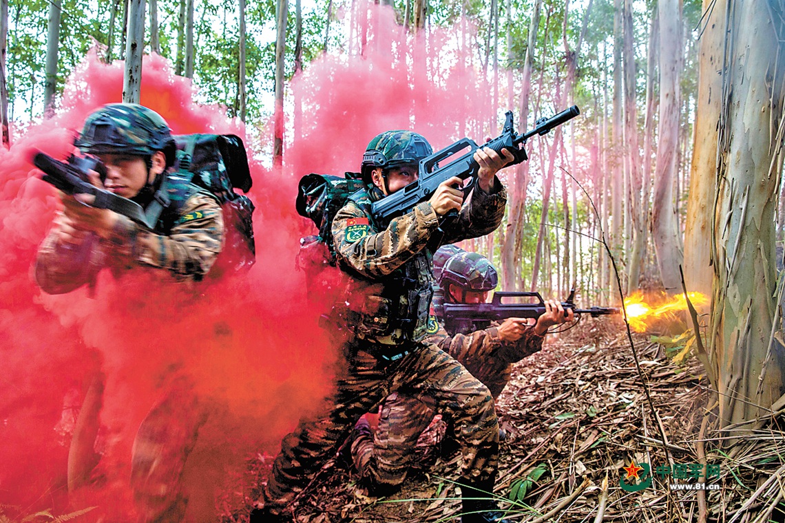 丛林捕歼战斗中,特战队员对目标实施打击。