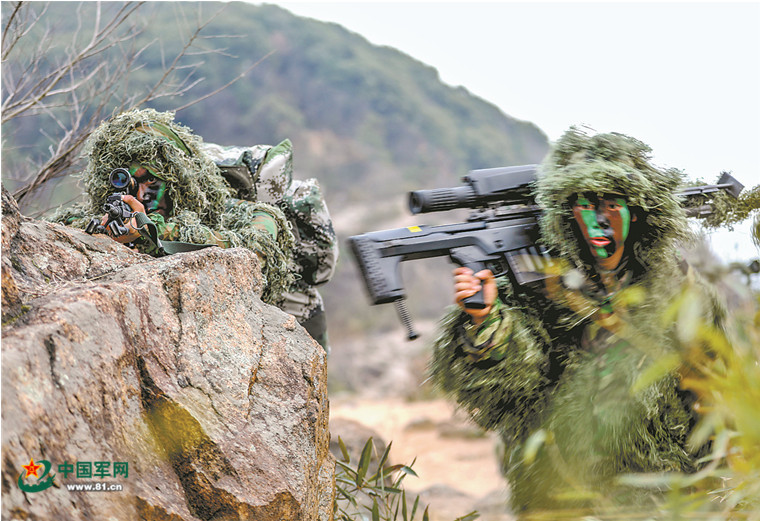密林深处,一支侦察分队进入“敌”方封锁区域。面对“敌”多组哨兵和空中无人机不定时搜索,分队长迅速指挥队员进行分散侦察,寻找区域内薄弱环节,制定行动路线,采取交替掩护、快速跃进等战术,悄然穿过封锁区域,成功潜入“敌”后。