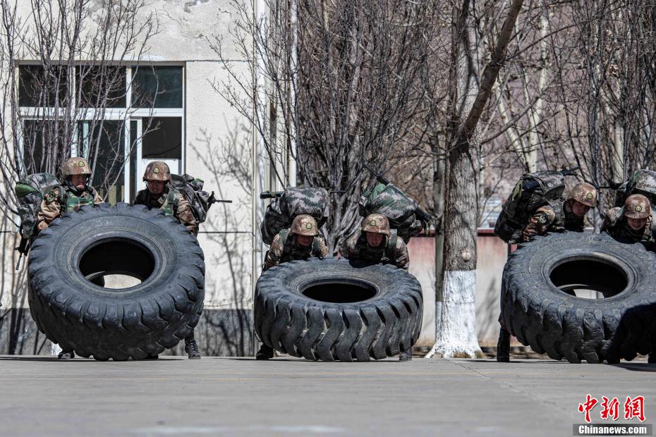 图为官兵在负重条件下进行翻轮胎训练。 王述东 摄