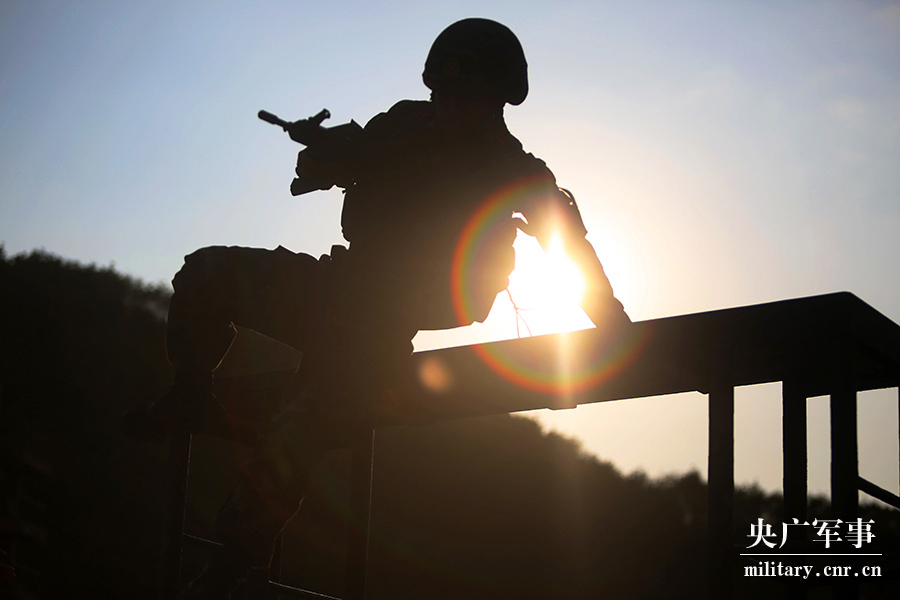 特战队员正在进行携抢通过200米障碍考核