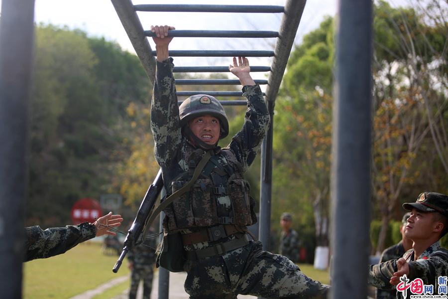 此次比武主要围绕攀登、体能、擒敌、枪种射击等重点课目进行,参赛的队员要完成18米抓绳上、实装通过200米障碍、步手枪限时快速射击等多项实战化课目。